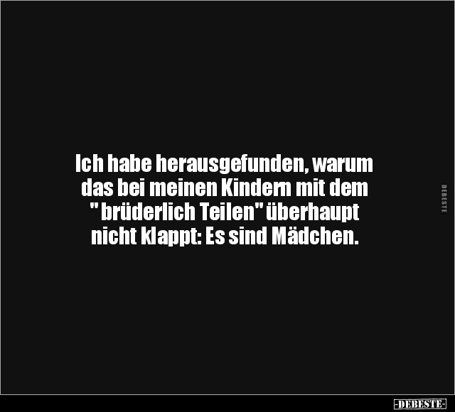 Ich habe herausgefunden, warum das bei meinen Kindern mit dem " brüderlich Teilen" überhaupt nicht klappt: Es sind Mädchen.