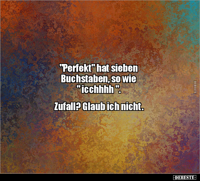 "Perfekt" hat sieben Buchstaben, so wie " icchhhh ". Zufall? Glaub ich nicht.