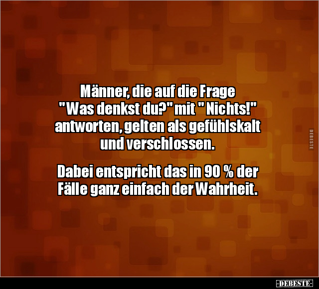 Männer, die auf die Frage " Was denkst du?" mit " Nichts!" antworten, gelten als gefühlskalt und verschlossen. Dabei entspricht das in 90 % der Fälle ganz einfach der Wahrheit.