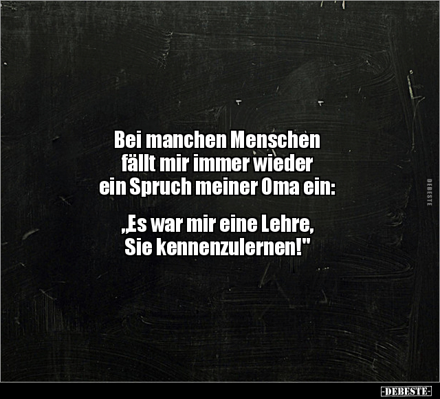 Bei manchen Menschen fällt mir immer wieder ein Spruch meiner Oma ein: „Es war mir eine Lehre, Sie kennenzulernen!"