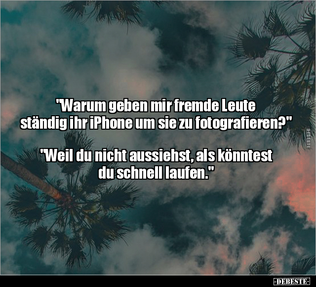 "Warum geben mir fremde Leute ständig ihr iPhone um sie zu fotografieren?" "Weil du nicht aussiehst, als könntest du schnell laufen."