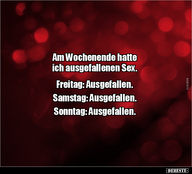 Am Wochenende hatte ich ausgefallenen Sex. Freitag: Ausgefallen. Samstag: Ausgefallen. Sonntag: Ausgefallen.