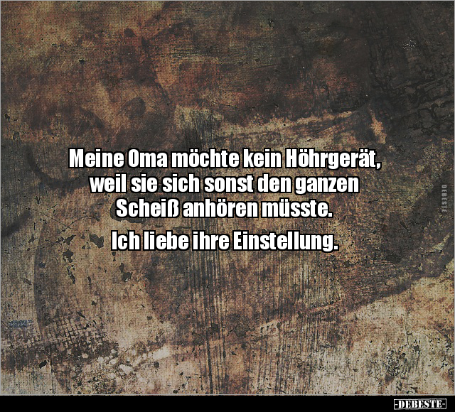 Meine Oma möchte kein Höhrgerät, weil sie sich sonst den ganzen Scheiß anhören müsste. Ich liebe ihre Einstellung.