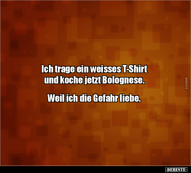 Ich trage ein weisses T-Shirt und koche jetzt Bolognese. Weil ich die Gefahr liebe.