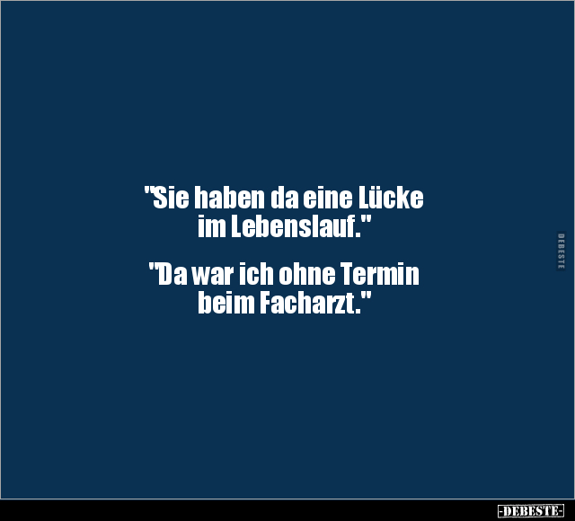 "Sie haben da eine Lücke im Lebenslauf." "Da war ich ohne Termin beim Facharzt."
