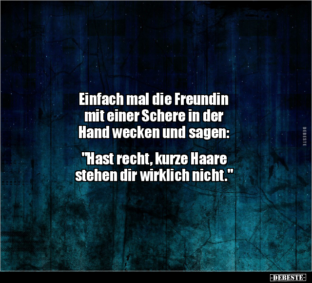 Einfach mal die Freundin mit einer Schere in der Hand wecken und sagen: "Hast recht, kurze Haare stehen dir wirklich nicht."