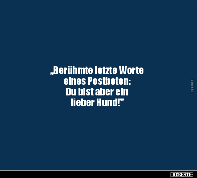 „Berühmte letzte Worte eines Postboten: Du bist aber ein lieber Hund!"