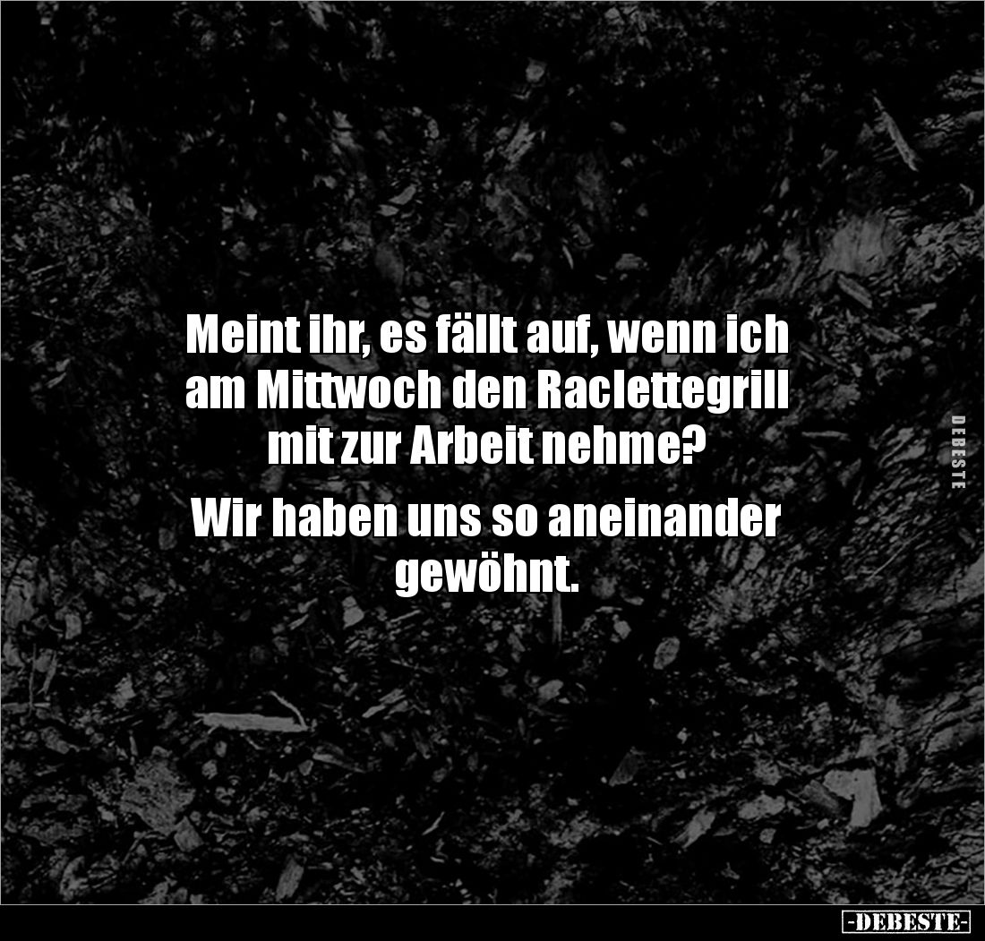 Meint ihr, es fällt auf, wenn ich am Mittwoch den Raclettegrill mit zur Arbeit nehme? Wir haben uns so aneinander gewöhnt.