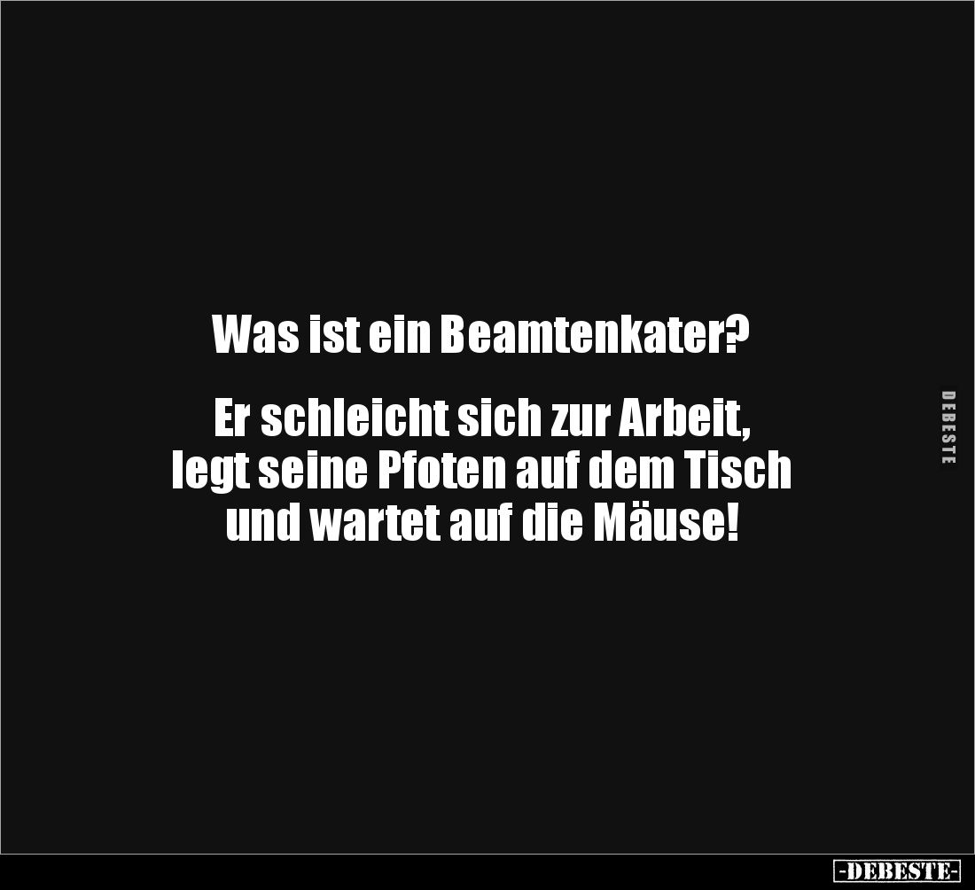 Was ist ein Beamtenkater? Er schleicht sich zur Arbeit, legt seine Pfoten auf dem Tisch und wartet auf die Mäuse!