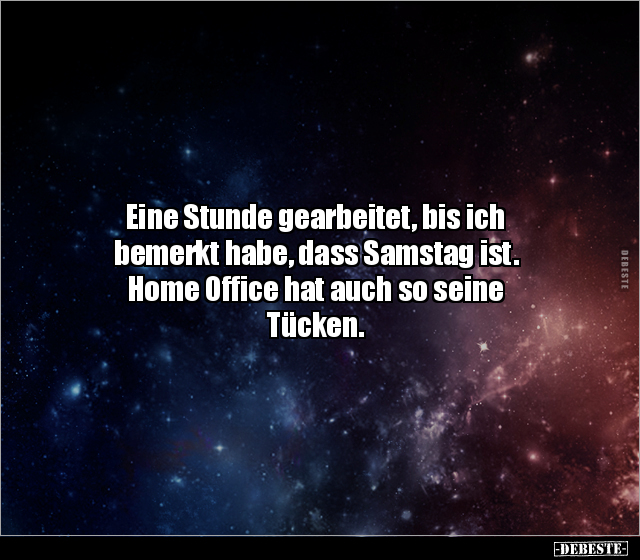 Eine Stunde gearbeitet, bis ich bemerkt habe, dass Samstag ist. Home Office hat auch so seine Tücken.