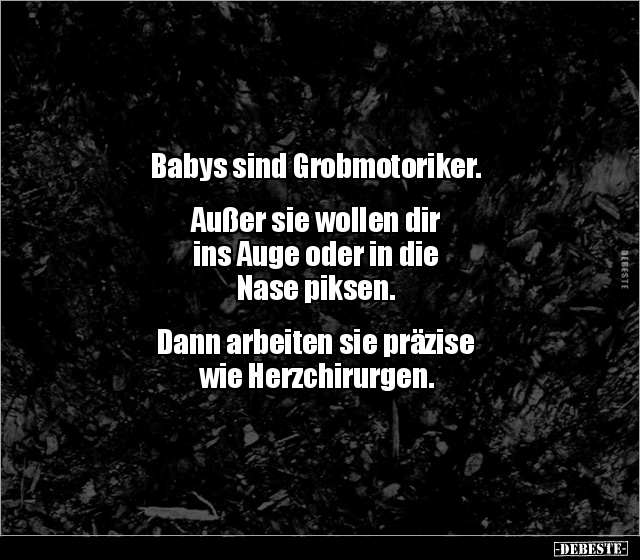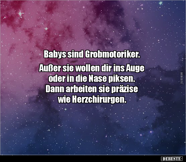 Babys sind Grobmotoriker. Außer sie wollen dir ins Auge oder in die Nase piksen. Dann arbeiten sie präzise wie Herzchirurgen.