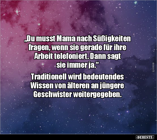 „Du musst Mama nach Süßigkeiten fragen, wenn sie gerade für ihre Arbeit telefoniert. Dann sagt sie immer ja.“ Traditionell wird bedeutendes Wissen von älteren an jüngere Geschwister weitergegeben.