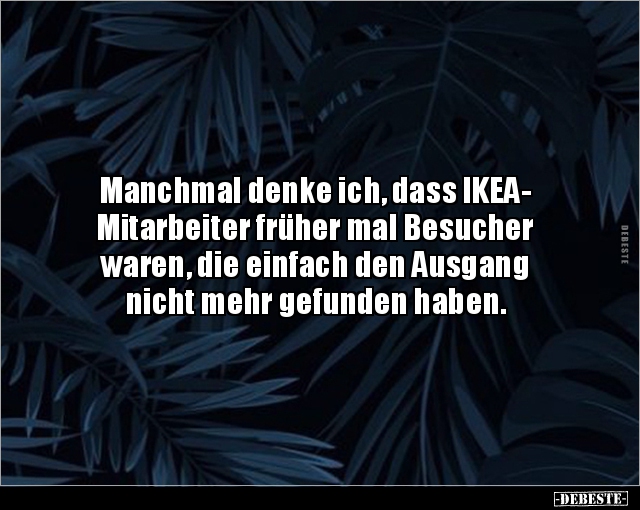Manchmal denke ich, dass IKEA- Mitarbeiter früher mal Besucher waren, die einfach den Ausgang nicht mehr gefunden haben.