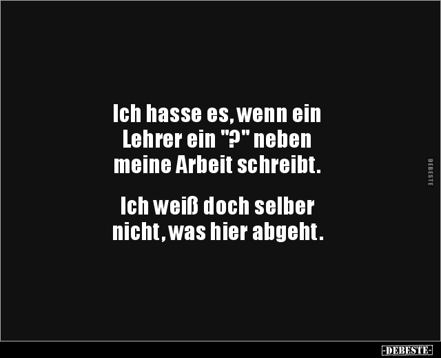 Ich hasse es, wenn ein Lehrer ein "?" neben meine Arbeit schreibt. Ich weiß doch selber nicht, was hier abgeht.