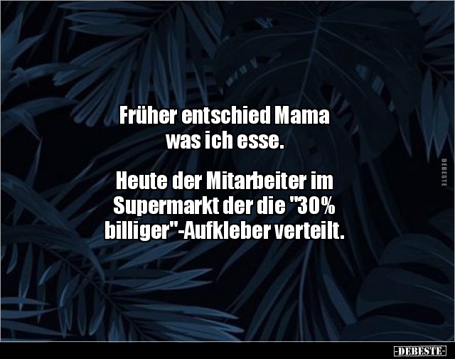 Früher entschied Mama was ich esse. Heute der Mitarbeiter im Supermarkt der die "30% billiger"-Aufkleber verteilt.