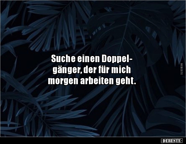 Suche einen Doppel- gänger, der für mich morgen arbeiten geht.