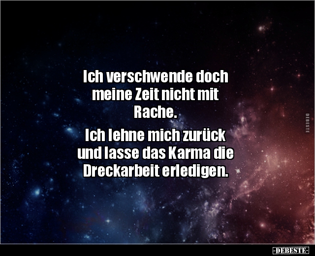 Ich verschwende doch meine Zeit nicht mit Rache. Ich lehne mich zurück und lasse das Karma die Dreckarbeit erledigen.
