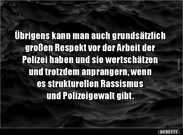 Übrigens kann man auch grundsätzlich großen Respekt vor der Arbeit der Polizei haben und sie wertschätzen und trotzdem anprangern, wenn es strukturellen Rassismus und Polizeigewalt gibt.