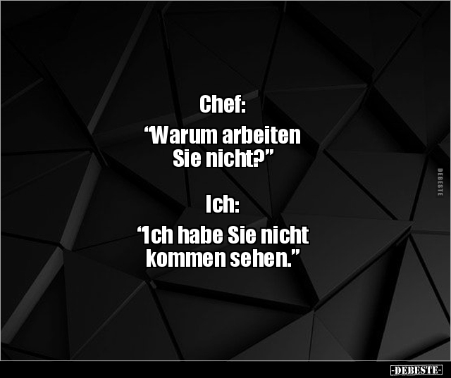 Chef: “Warum arbeiten Sie nicht?” Ich: “Ich habe Sie nicht kommen sehen.”