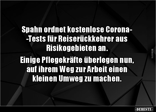 Spahn ordnet kostenlose Corona- -Tests für Reiserückkehrer aus Risikogebieten an. Einige Pflegekräfte überlegen nun, auf ihrem Weg zur Arbeit einen kleinen Umweg zu machen.