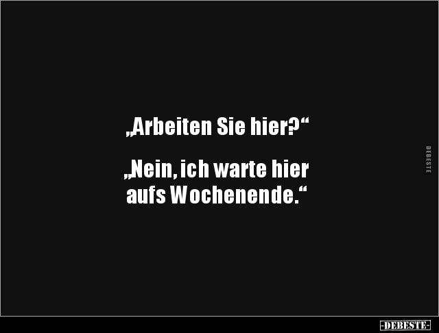 „Arbeiten Sie hier?“ „Nein, ich warte hier aufs Wochenende.“