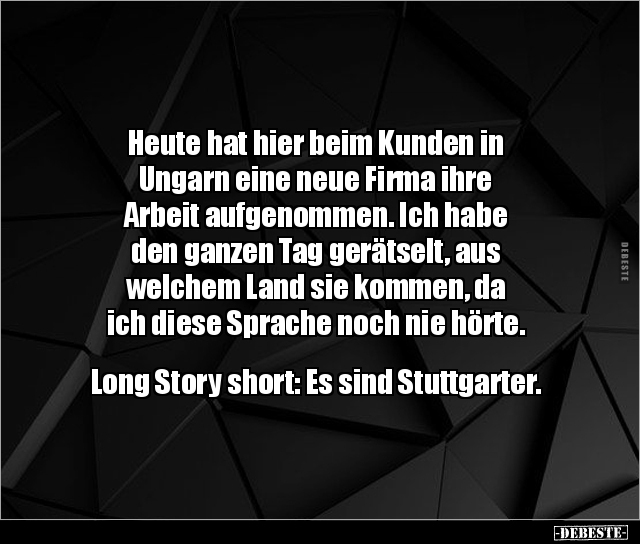 Heute hat hier beim Kunden in Ungarn eine neue Firma ihre Arbeit aufgenommen. Ich habe den ganzen Tag gerätselt, aus welchem Land sie kommen, da ich diese Sprache noch nie hörte. Long Story short: Es sind Stuttgarter.