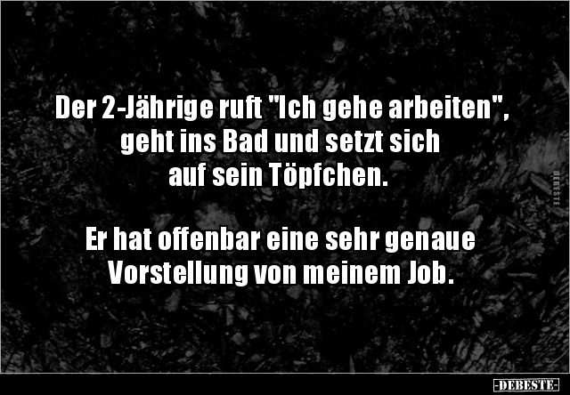 Der 2-Jährige ruft "Ich gehe arbeiten", geht ins Bad und setzt sich auf sein Töpfchen. Er hat offenbar eine sehr genaue Vorstellung von meinem Job.