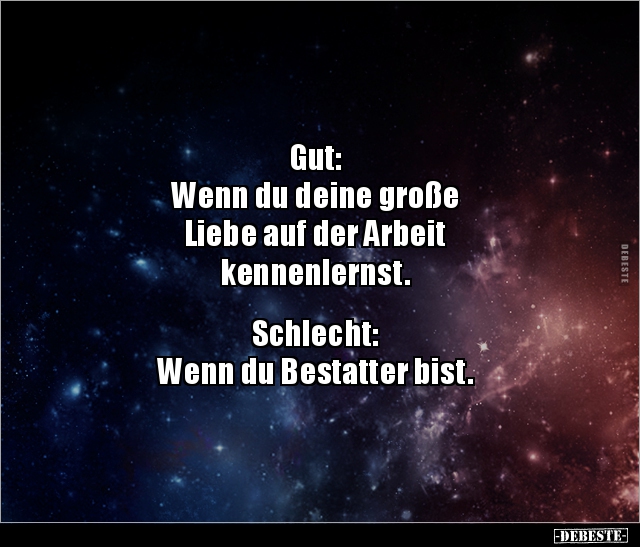 Gut: Wenn du deine große Liebe auf der Arbeit kennenlernst. Schlecht: Wenn du Bestatter bist.