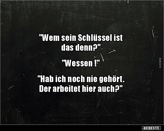 "Wem sein Schlüssel ist das denn?" "Wessen !" "Hab ich noch nie gehört. Der arbeitet hier auch?"