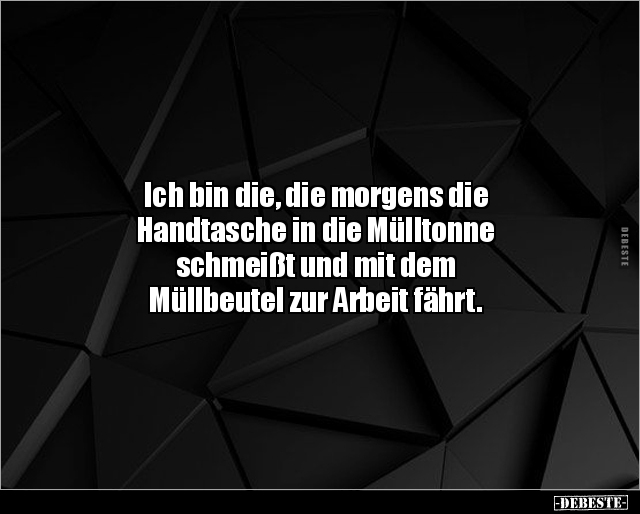 Ich bin die, die morgens die Handtasche in die Mülltonne schmeißt und mit dem Müllbeutel zur Arbeit fährt.