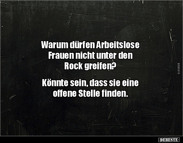 Warum dürfen Arbeitslose Frauen nicht unter den Rock greifen? Könnte sein, dass sie eine offene Stelle finden.