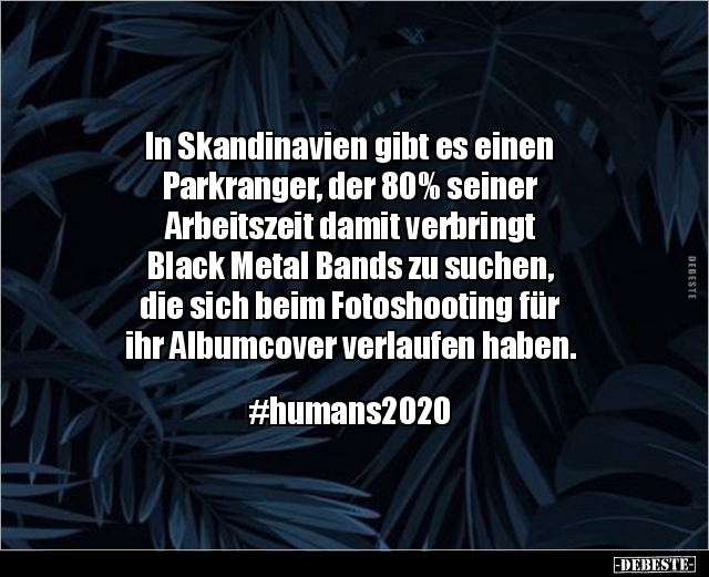In Skandinavien gibt es einen Parkranger, der 80% seiner Arbeitszeit damit verbringt Black Metal Bands zu suchen, die sich beim Fotoshooting für ihr Albumcover verlaufen haben. #humans2020