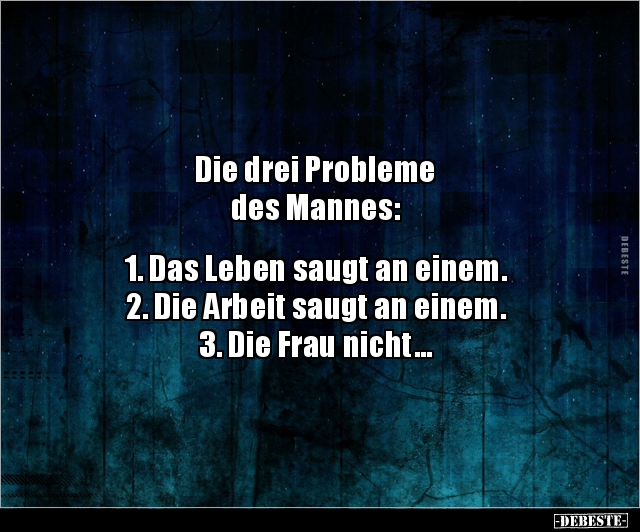 Die drei Probleme des Mannes: 1. Das Leben saugt an einem. 2. Die Arbeit saugt an einem. 3. Die Frau nicht...