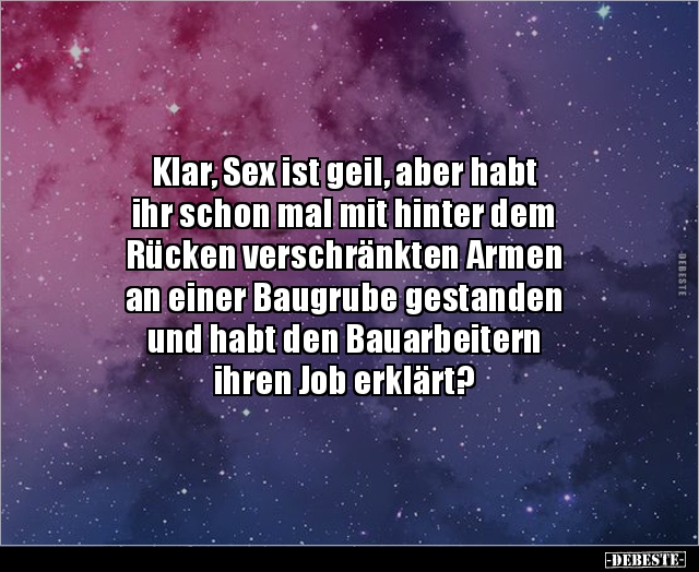 Klar, Sex ist geil, aber habt ihr schon mal mit hinter dem Rücken verschränkten Armen an einer Baugrube gestanden und habt den Bauarbeitern ihren Job erklärt?