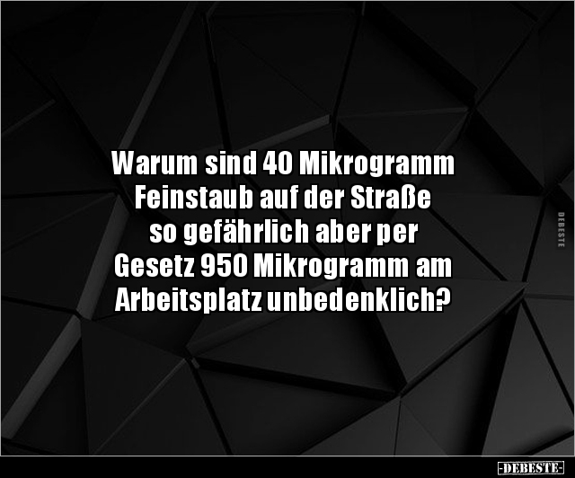 Warum sind 40 Mikrogramm Feinstaub auf der Straße so gefährlich aber per Gesetz 950 Mikrogramm am Arbeitsplatz unbedenklich?