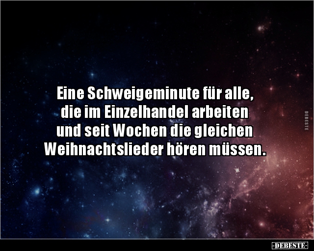 Eine Schweigeminute für alle, die im Einzelhandel arbeiten und seit Wochen die gleichen Weihnachtslieder hören müssen.