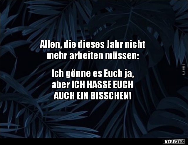 Allen, die dieses Jahr nicht mehr arbeiten müssen: Ich gönne es Euch ja, aber ICH HASSE EUCH AUCH EIN BISSCHEN!
