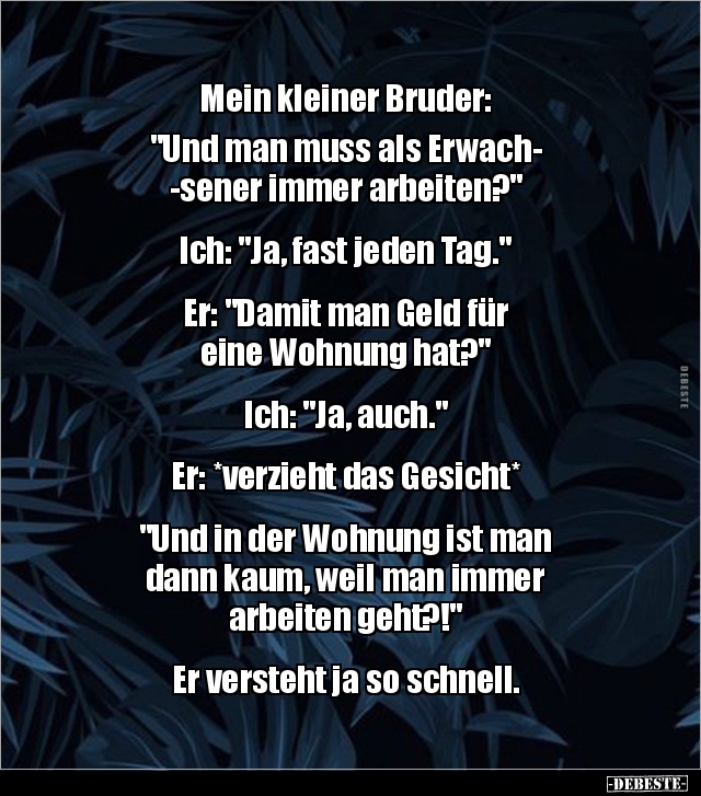 "Aber wie! Kam heim, Abendessen stand schon auf'm Tisch. Weggeputzt wie nix, dann die Alte gevögelt und gemeinsam eingepennt. Besser geht's nicht. Und bei Dir?"