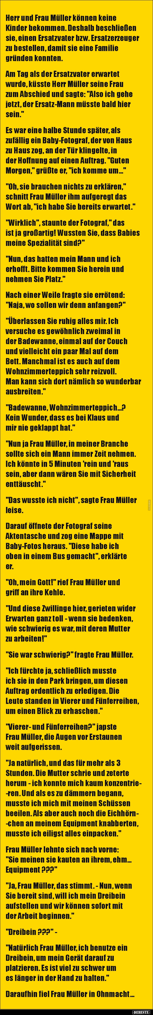 "Wirklich", staunte der Fotograf," das ist ja großartig! Wussten Sie, dass Babies meine Spezialität sind?"