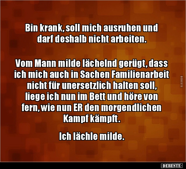 "Ach, hör mir auf, totaler Scheiss! Freitag hatte ich nichts zu lachen, Samstag hatte ich nichts zu lachen! Ja und stelle Dir vor, am Sonntagnachmittag komme ich unverhofft ins Badezimmer, steht doch da mein Mann und lacht sich ins Fäustchen."
