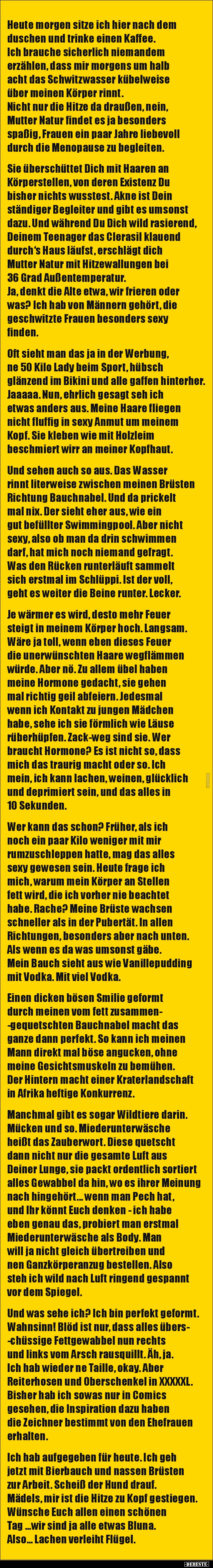 Ich brauche sicherlich niemandem erzählen, dass mir morgens um halb acht das Schwitzwasser kübelweise über meinen Körper rinnt.