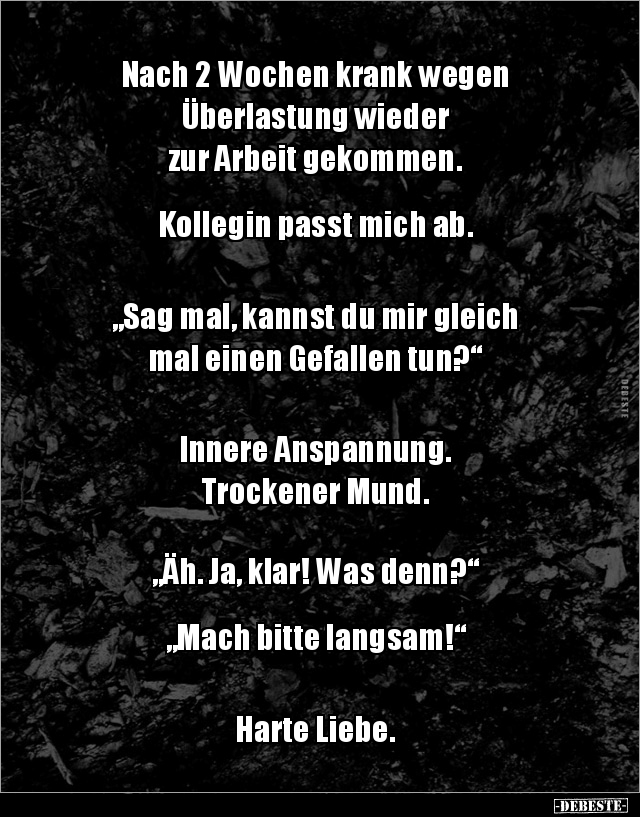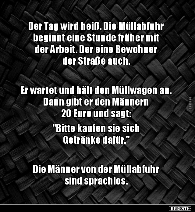 Die Blondine griff in die Tasche und reichte ihm wortlos 5 Euro rüber.