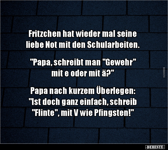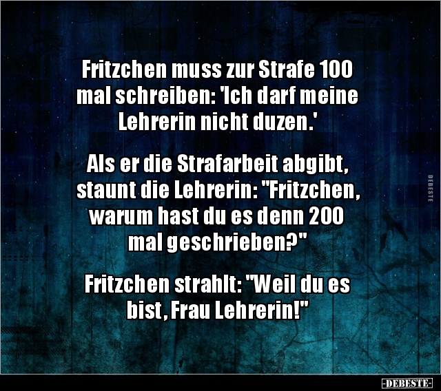 Erster: "Mensch, Alter, ich war gestern bei ihr zu Hause und wollte sie vernaschen."