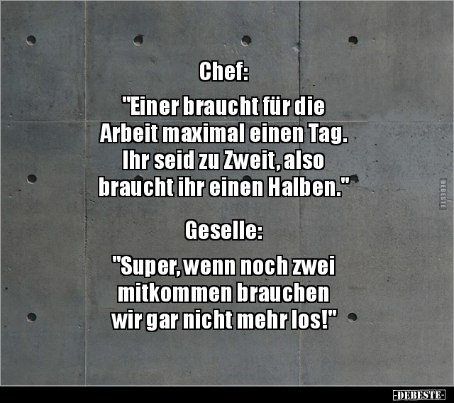 Sagt der Zweite: "Super! Die Wäsche, die du gestern gebügelt hast, hab ich vorgestern gewaschen!"