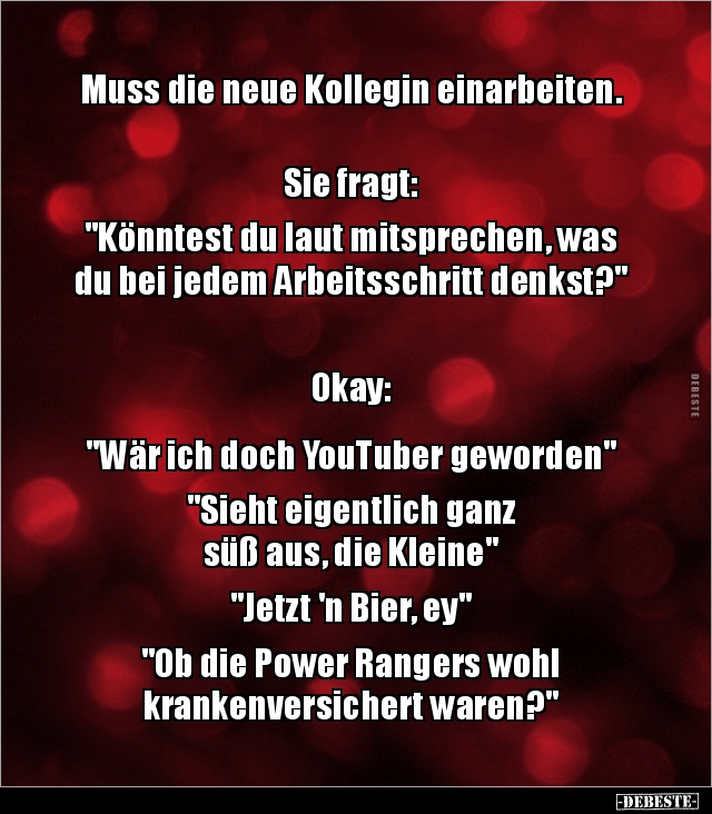 Erster: "Du kennst doch die kleine süße Maus aus der Buchhaltung?"