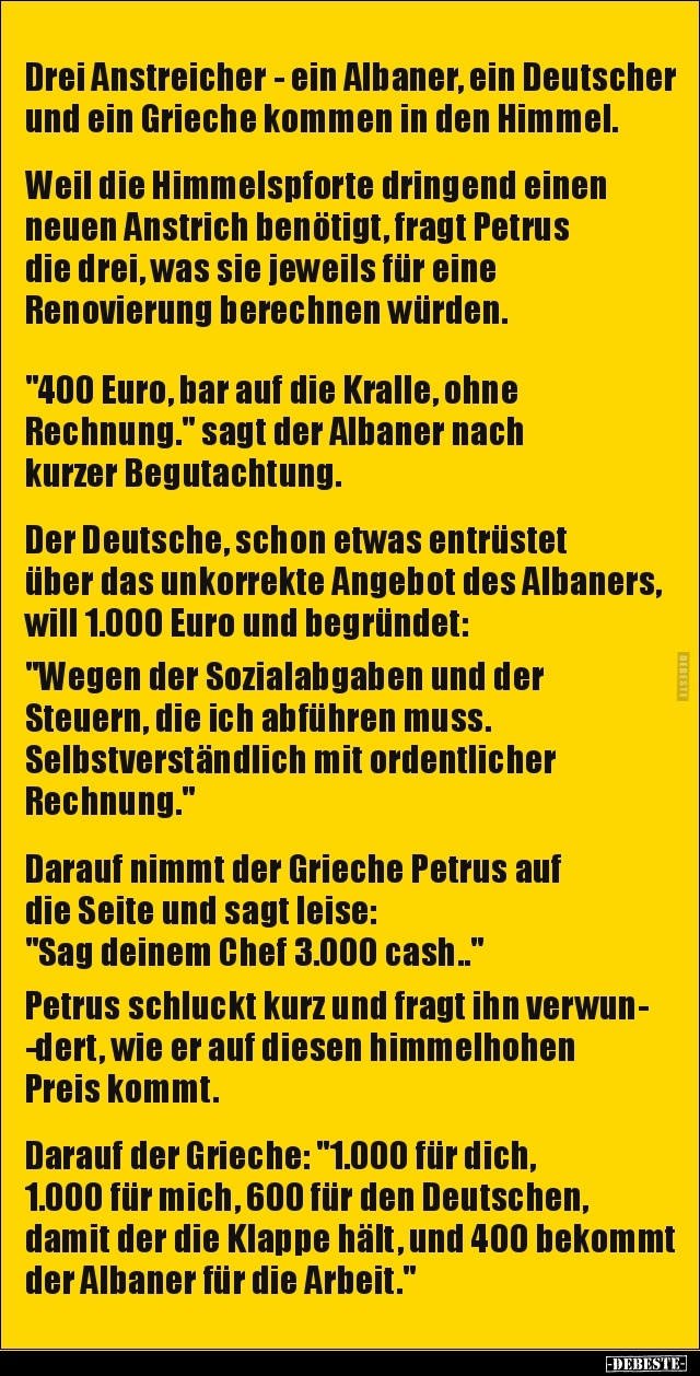 Drei Anstreicher - ein Albaner, ein Deutscher und ein Grieche kommen in den Himmel.