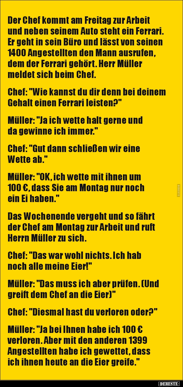 Der Deutsche, schon etwas entrüstet über das unkorrekte Angebot des Albaners, will 1.000 Euro und begründet: