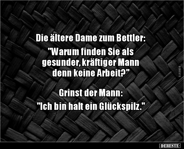 Der Deutsche antwortet: Mein Großvater war arbeitslos, mein Vater ist arbeitslos und ich bin arbeitslos.