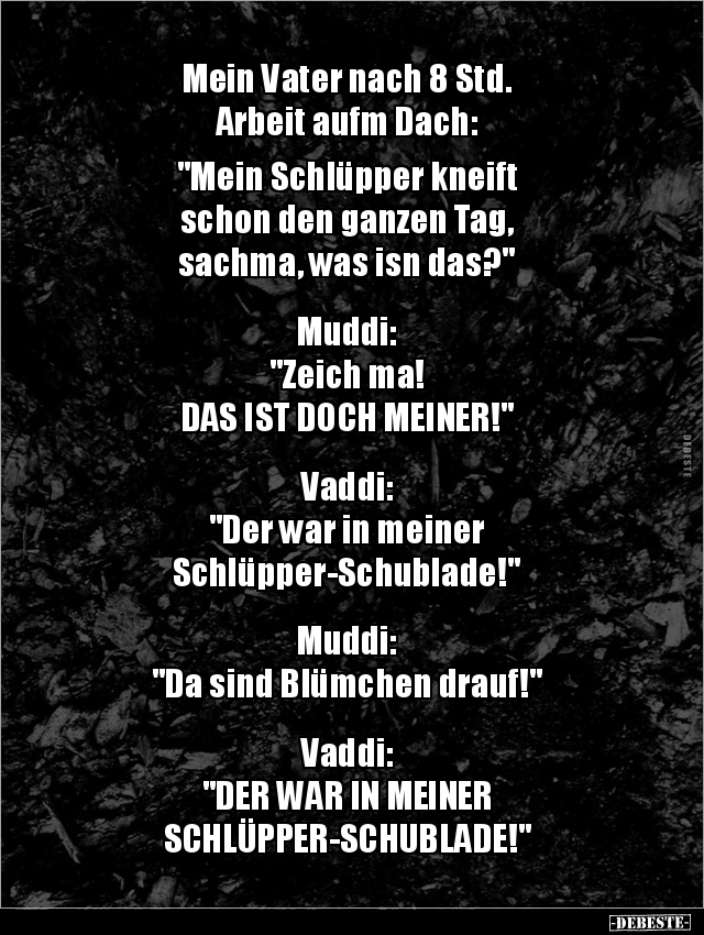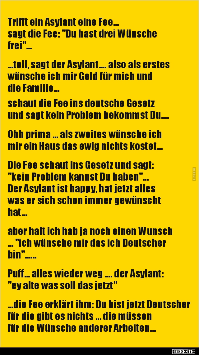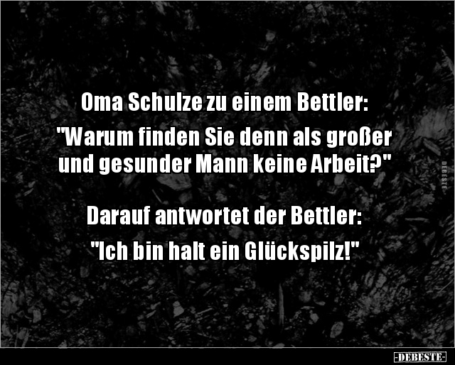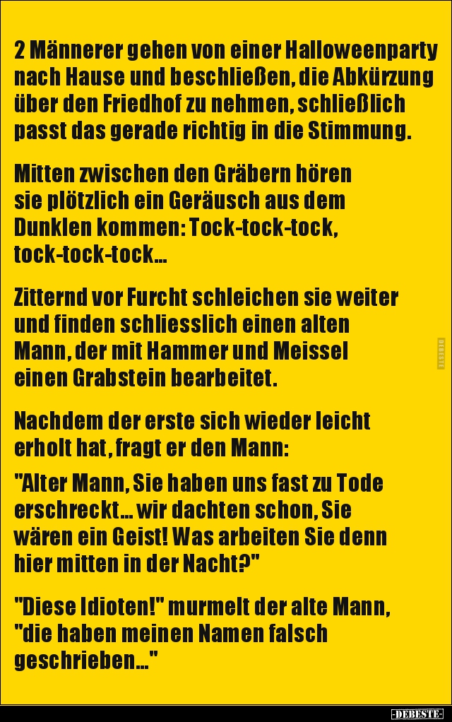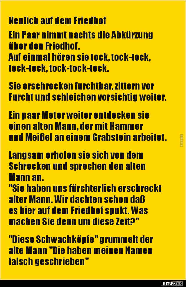 Er nimmt das Angebot an und dreht ein paar Runden. Mit dem Wagen ist alles okay. Er bringt ihn zu ihr zurück und fragt:"Wieso verkaufen sie den Wagen für nur 50€ ?"