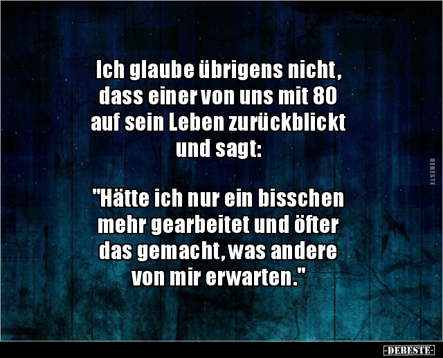Das Leben sollte mit dem Tod beginnen und nicht andersherum! Stell Dir mal vor, Du liegst six feet under, es ist dunkel und muffig und dann gräbst du dich dem Licht entgegen.
